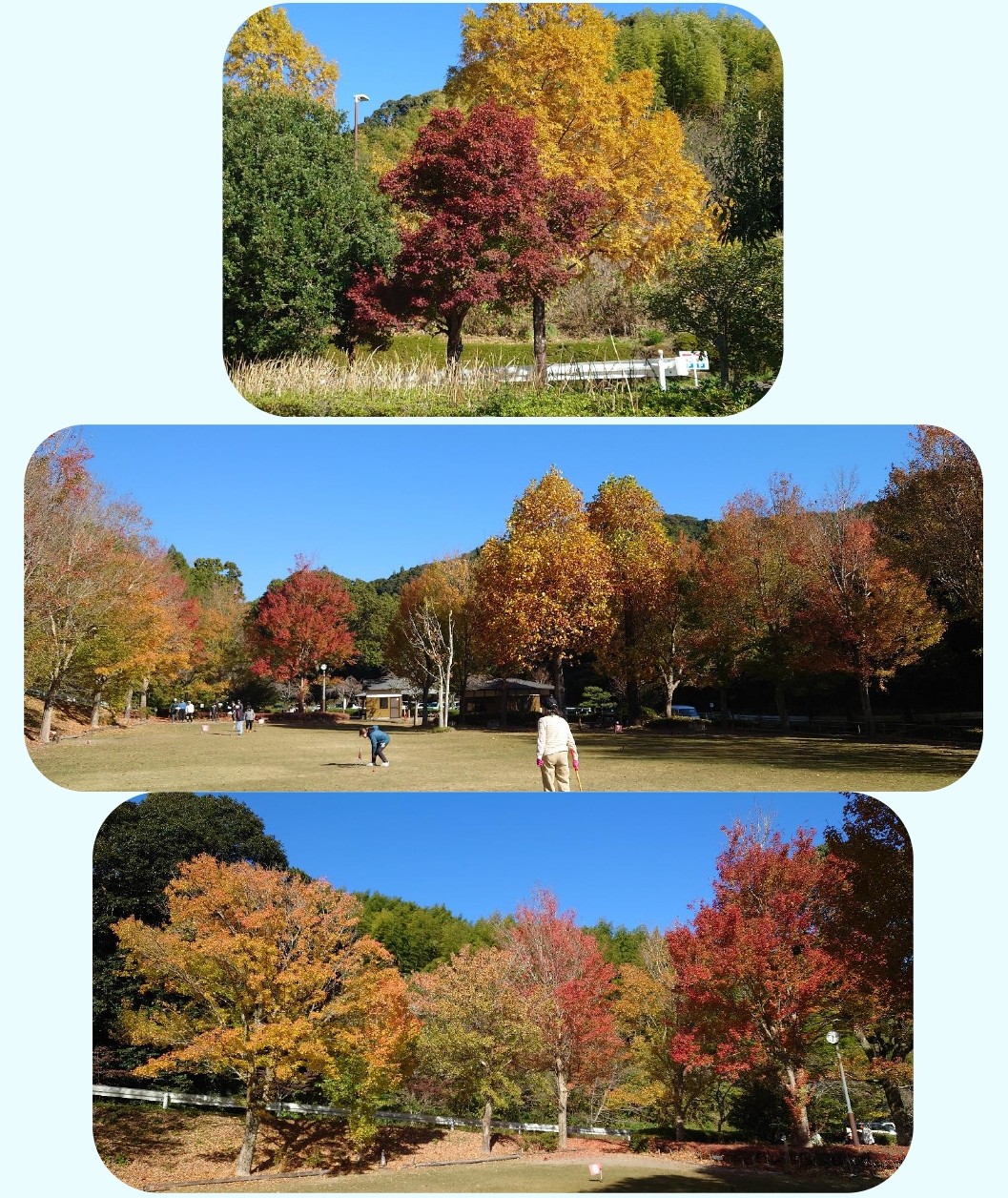 また、グラウンドゴルフ場でもトウカエデなどが赤や黄色に変わっています。