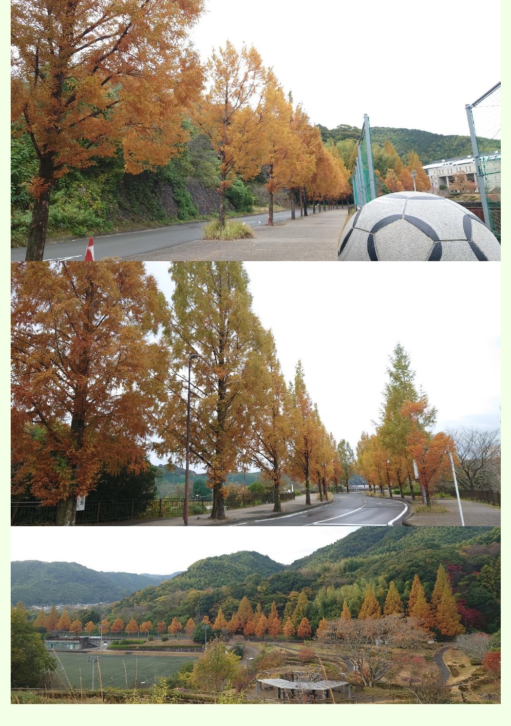 多目的広場西側から第1駐車場に繋がる園路沿いの長いメタセコイア並木が