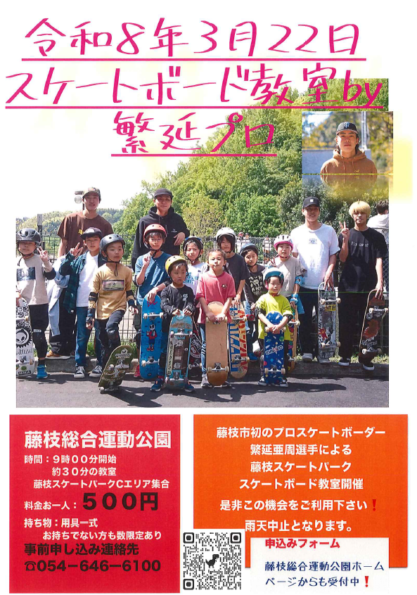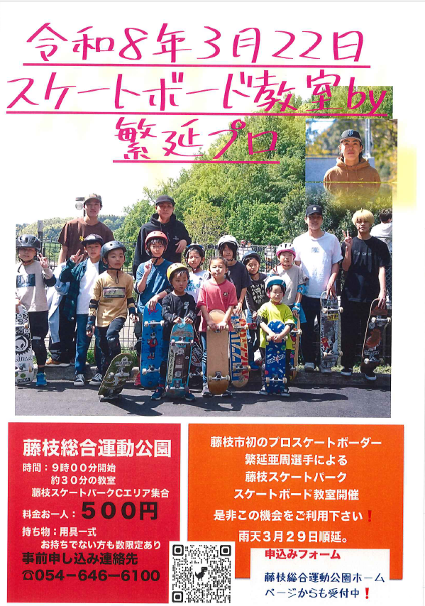 藤枝総合運動公園スケートボード教室の開催が決定しました。