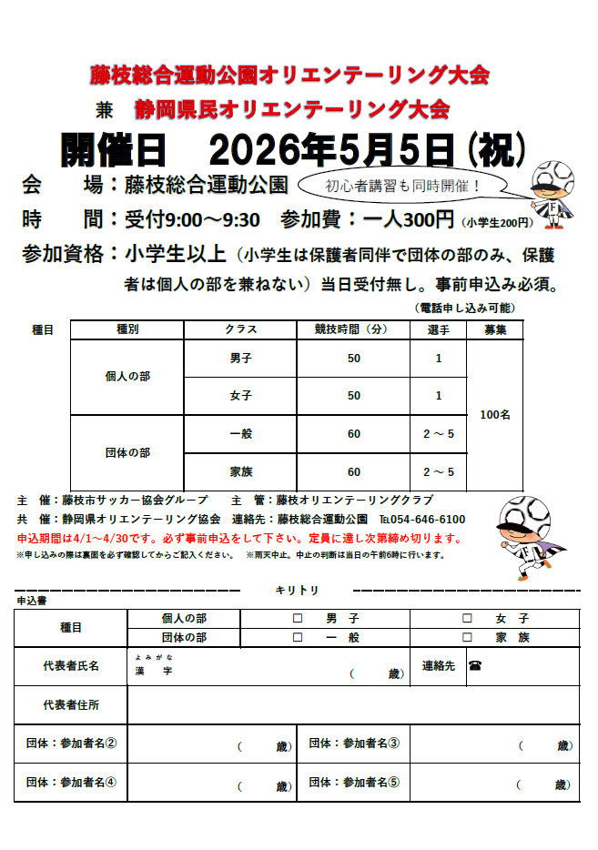 2026年5月5日に当藤枝総合運動公園にてオリエンテー