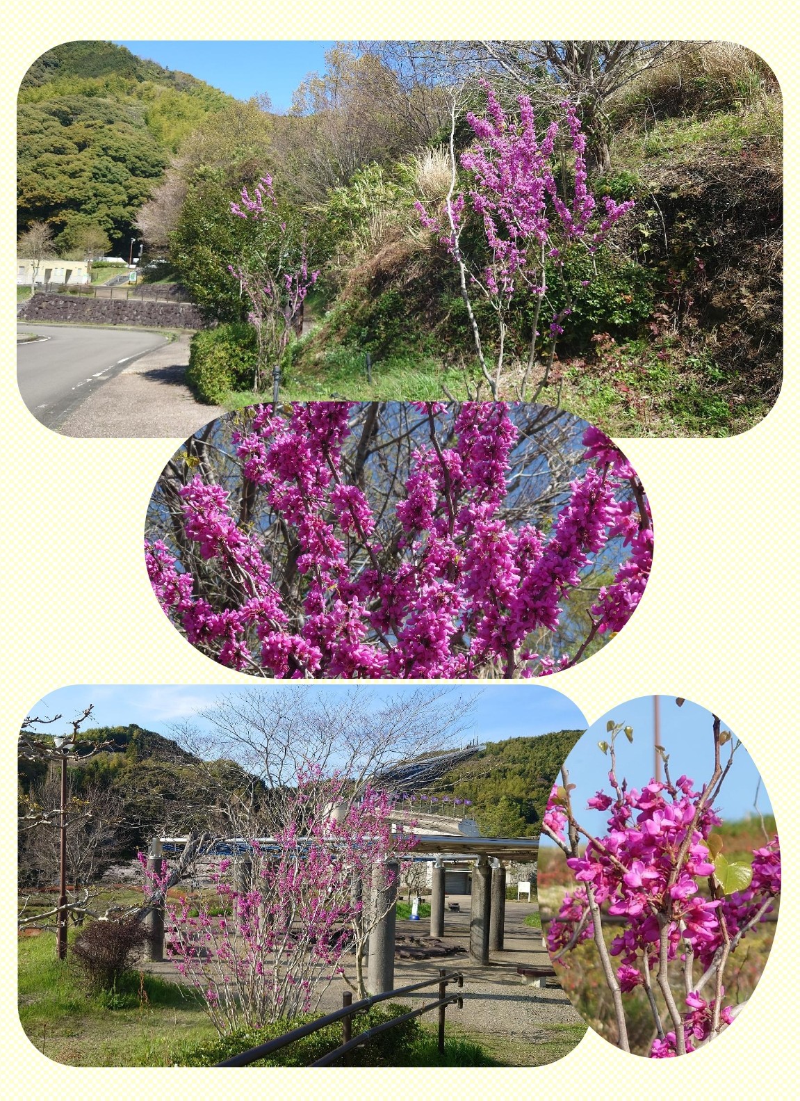 ハナズオウが鮮やかなピンク色の花を咲かせています✿