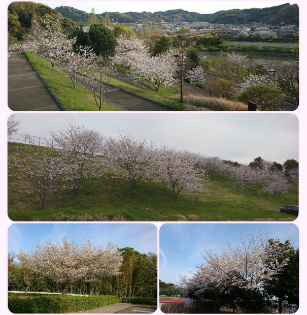 運動公園内でも様々な場所で淡いピンク色の満開の花を見ることができます。