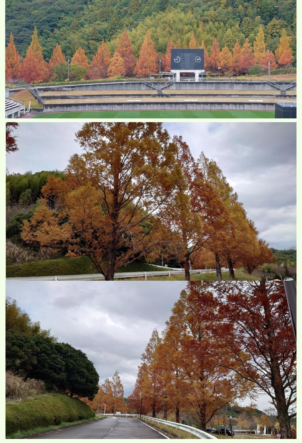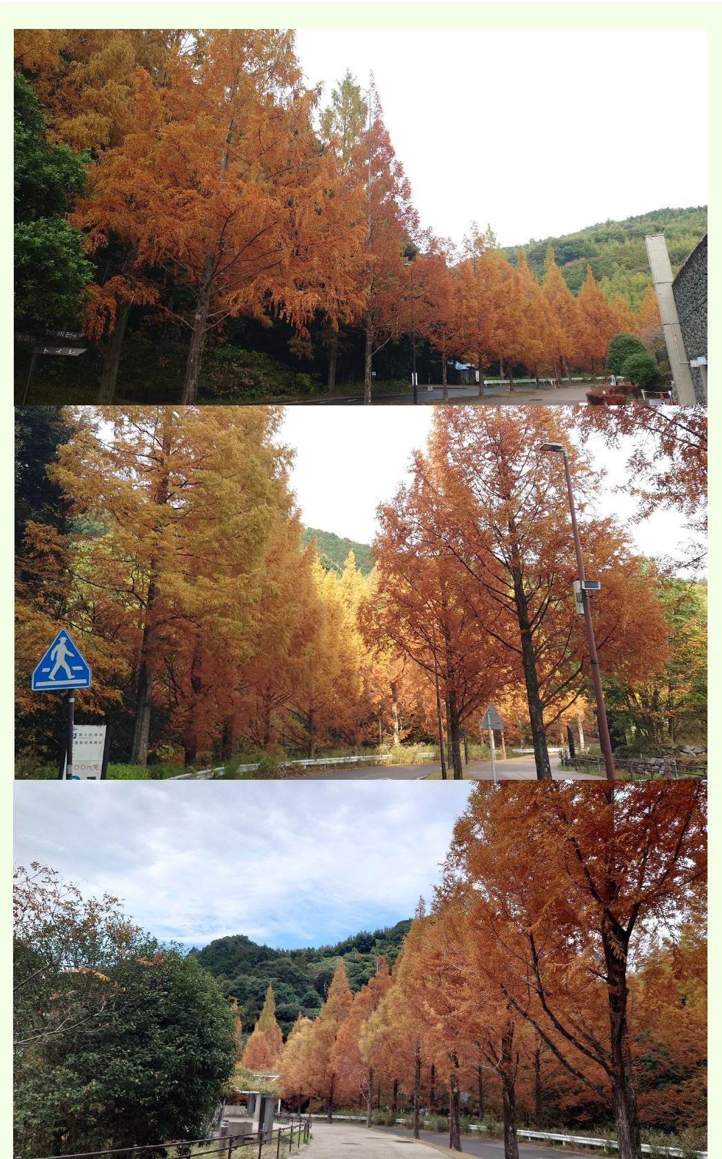 多目的広場西側から第1駐車場に繋がる園路沿いの長いメタセコイア並木が